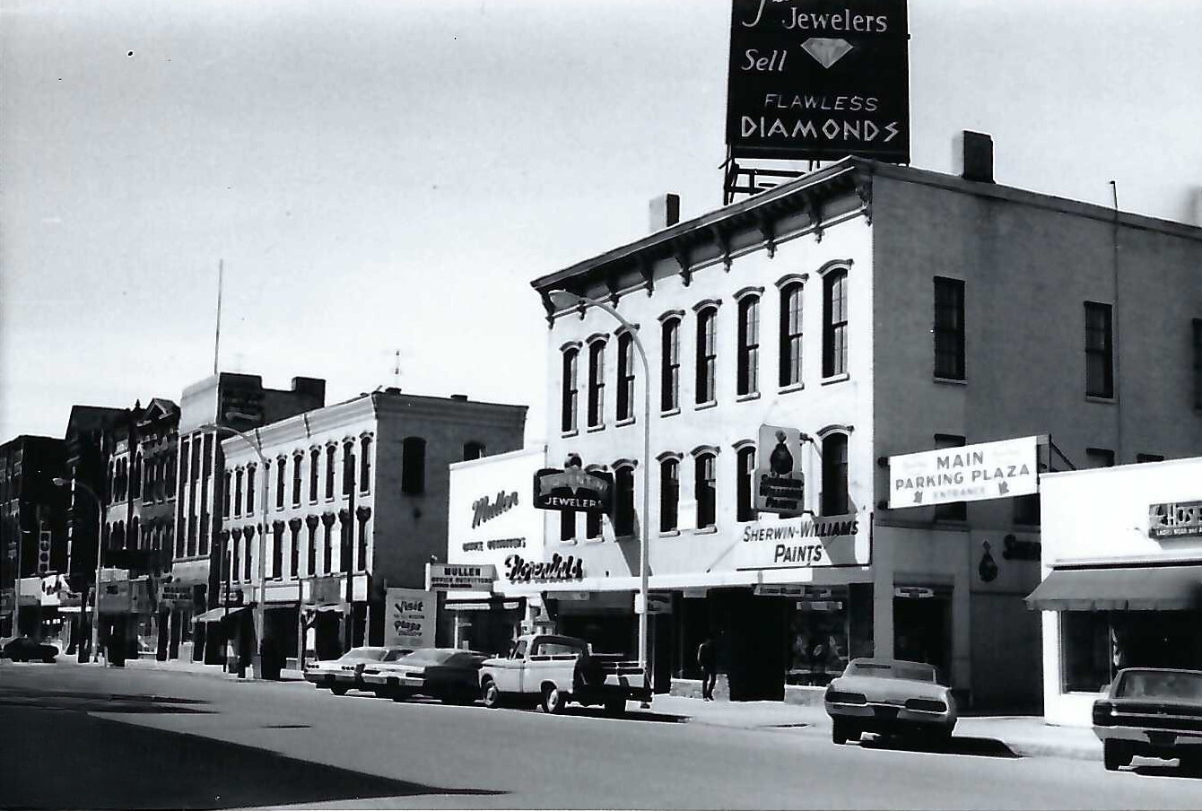 In 1886, Alden M. Jewett established his jewelry business which he kept in no.26 until 1920. In fact, the spot would serve as a jewelry store for over 100 years except for a short three years in the 1960s. Jewett’s was followed by the Andrews Brothers. Louis Fiorentini worked at Andrews’ while attending college in Morrisville, and would return to the address with his own jewelry business in 1963. Several years prior, the Fiorentini’s purchased the building. McGraw & Elliot Drug store had a three-year lease in no.26, but once they vacated the Fiorentinis remodeled the store back into a jewelry store which was open until 2008.