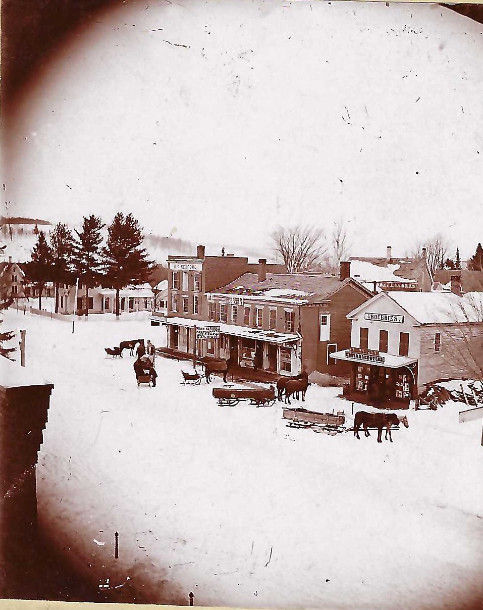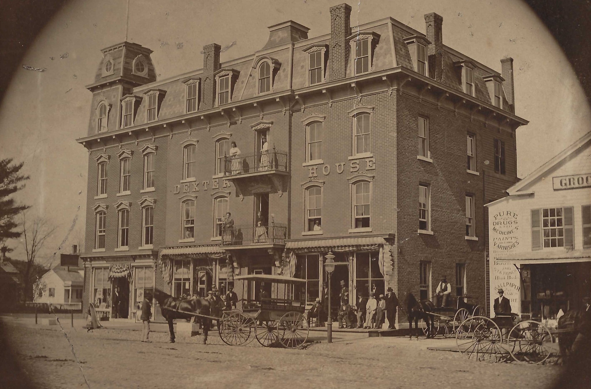 “an ornament to the street, and Mr. Dexter deserves credit for his enterprise. When reopened it will be second to no hotel in this section of the State,” (C.S. August 6, 1872). Credit of the building of the new structure was given to William Alvord who was present at the grand opening of the Dexter House in December of that year. “The tables were loaded with the choicest of viands, and the table linen and cutlery spotless in purity and burnish, and the guests did ample justice to the generous repast. After eating was no longer attractive, there was an active demand for speeches, but the responses seemed to be lacking,” the excuse for which was presented by Dr. Jewett “that it was well established by medical science that after such an indulgence of the stomach, it and the brain did not work in harmony,” (C.S. December 24, 1872).