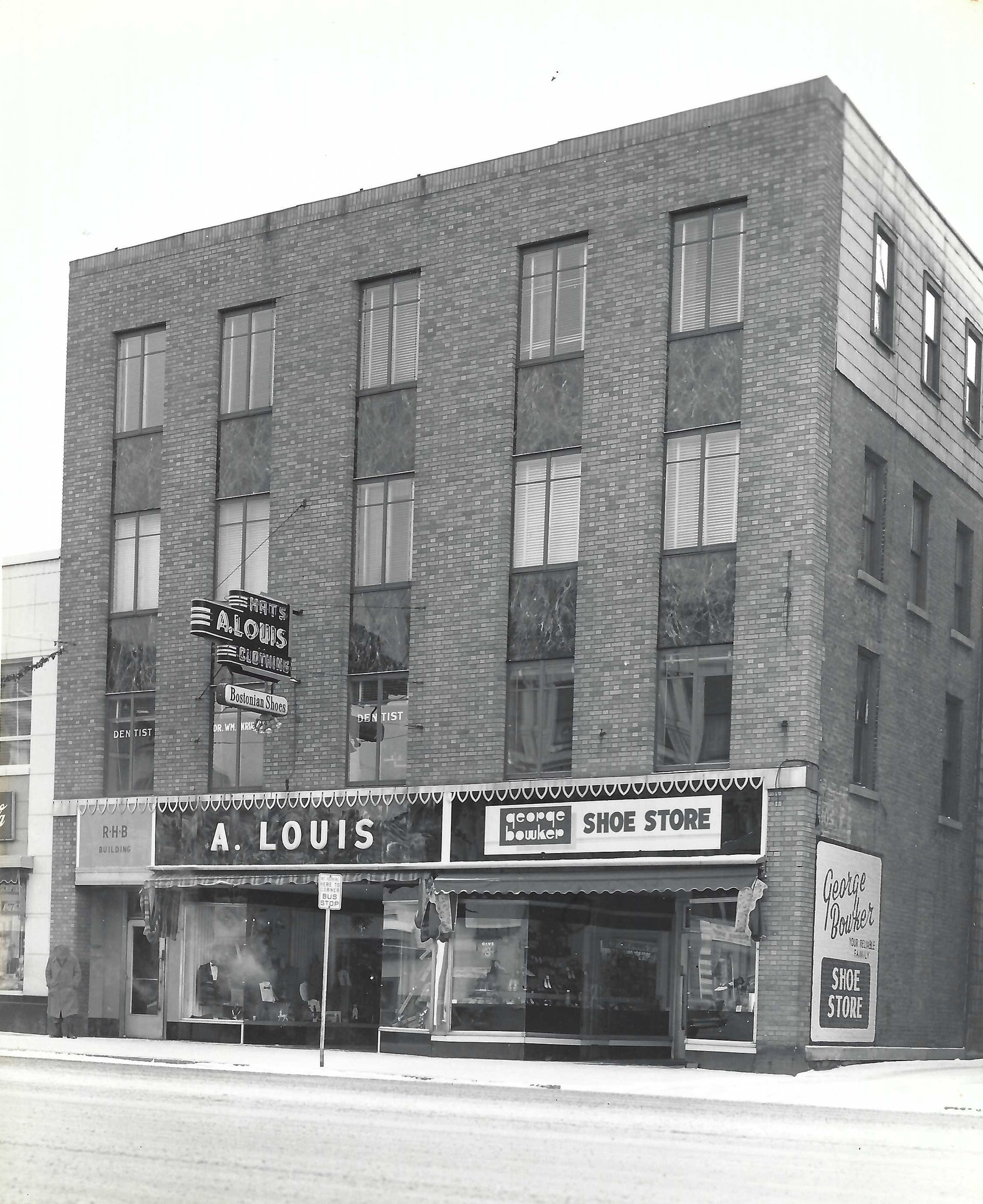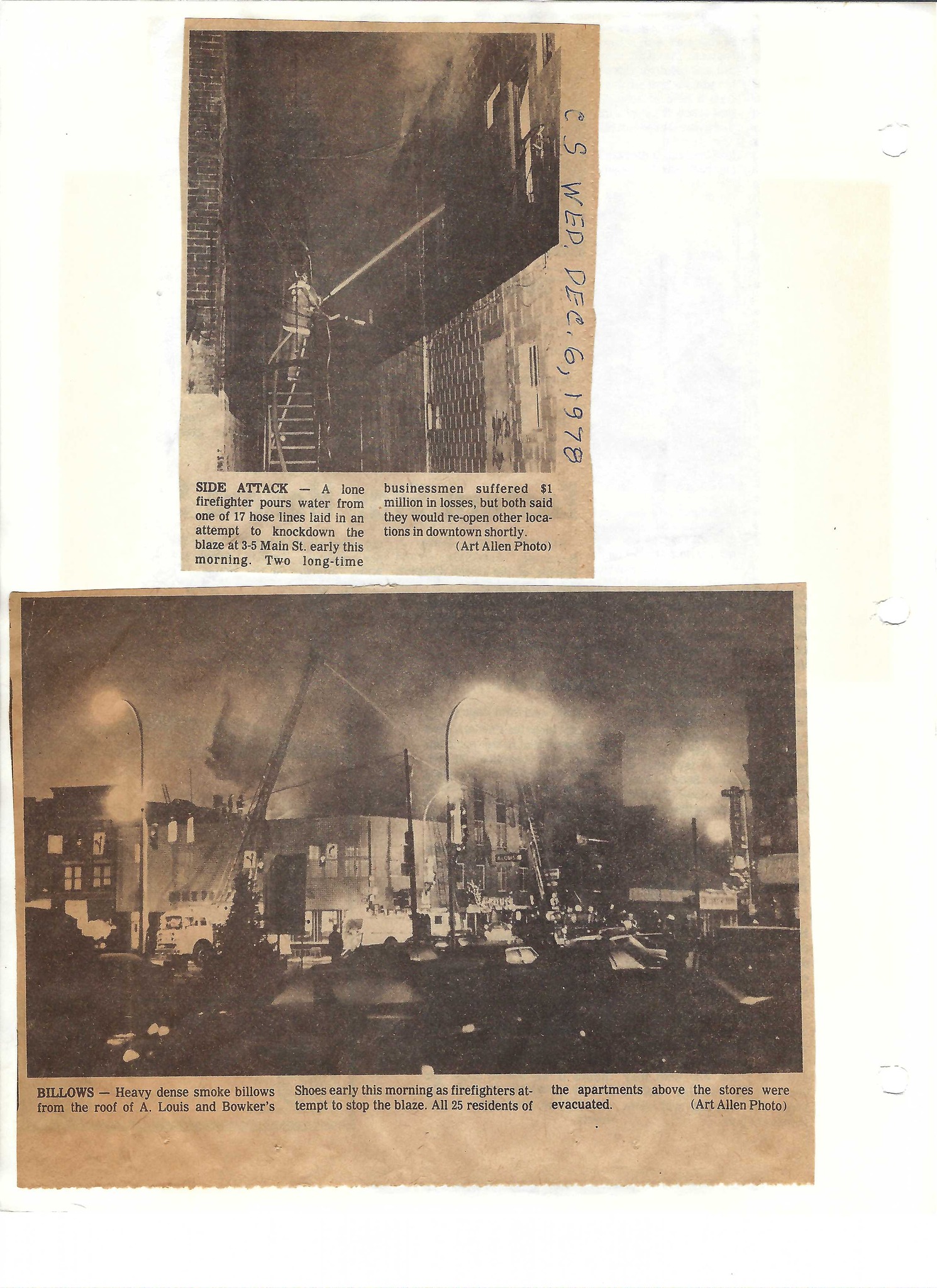 A fire in 1978 removed the third and fourth floors that contained mainly apartments and destroyed the interiors of A. Louis Men’s Store and George Bowker’s shoe store. By this point in time the building was referred to as the R.H.B. and A.T.&T. building. The fate of the structure seemed doomed for demolition, but as of today if you look down the alleyway to the right of the building you can still view some of the original brickwork of the old Dexter House building.