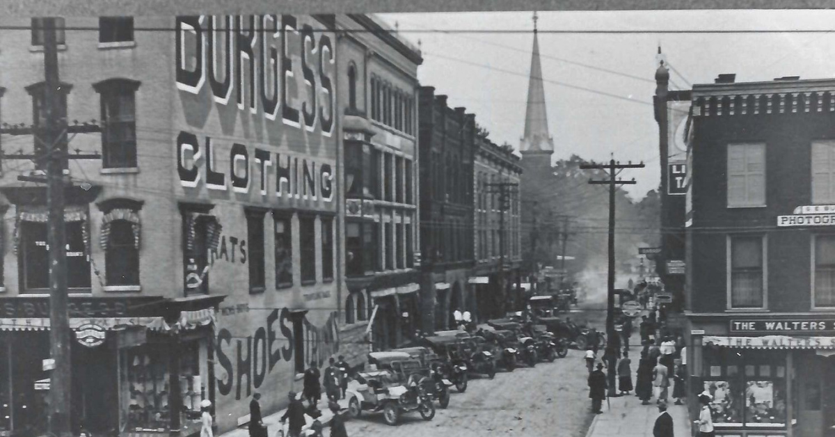 Before the formation of Central Avenue, formerly called Railroad Street, a building stood on Main Street at what would become the street entrance. The first structure we can date there is from 1841 which is the earliest I can find a business under the auspice of J.C. Pomeroy & Co., dealing in dry goods as the “Cortland Exchange” in the “new white building one door north of Wm. Elder.”
