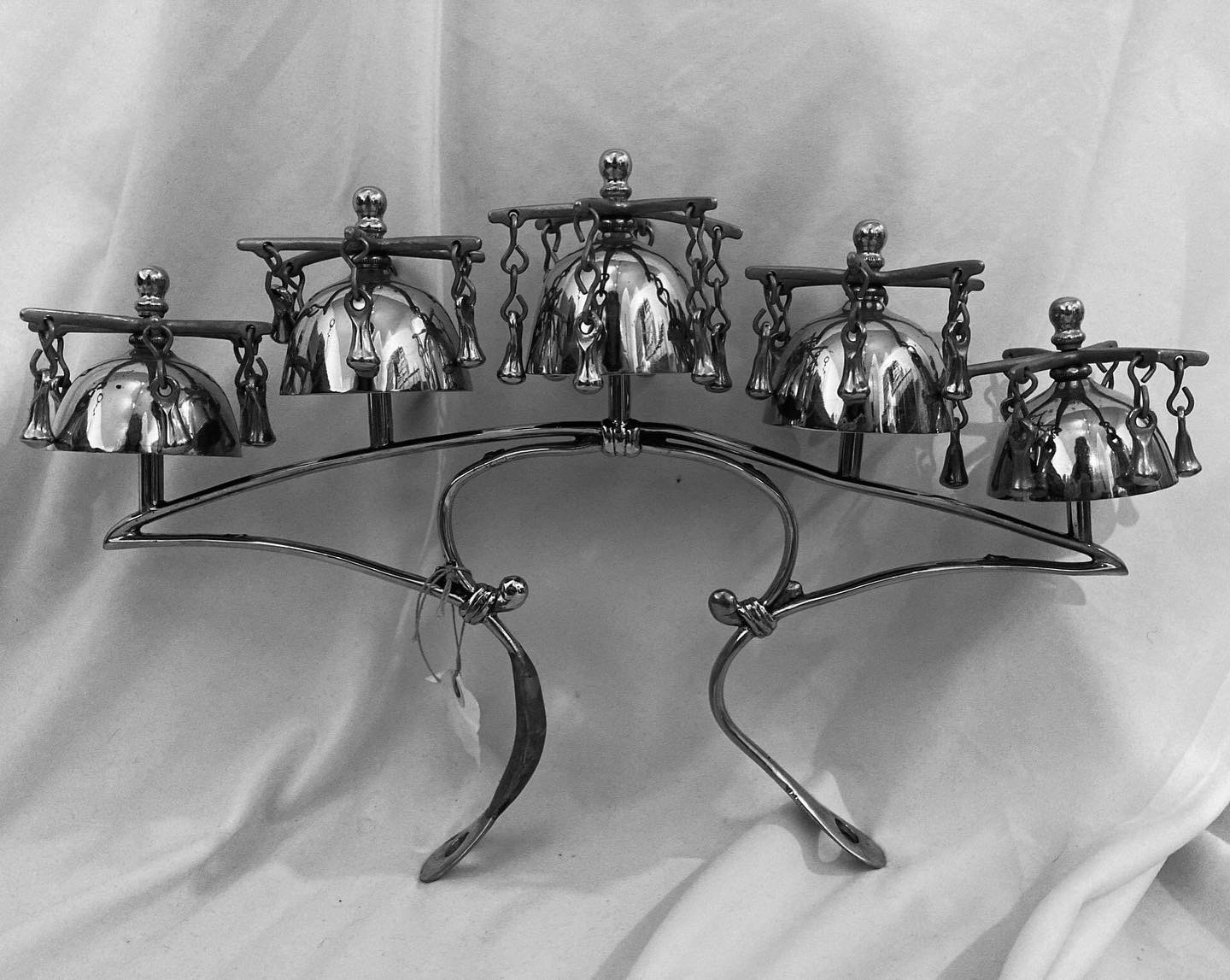 Before moving onto sleds, just a quick word about bells. Before automobiles, horses provided the power for transportation, and a horse-drawn sleigh over snow-covered roads was quiet and could prove disastrous for pedestrians or any other sleighs on the road. Sleighbells were originally used to alert people that a sleigh was coming, just as a car horn or a train whistle alert people to move out of the way. Bells provide a much lovelier sound than a horn or a whistle, don’t you agree? We have a beautiful set of sleigh bells from the L.J. Fitzgerald family that give a wonderful sound.